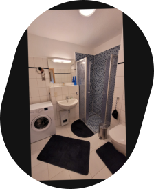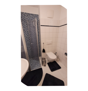 Das Badezimmer ist mit einer Dusche ausgestattet.